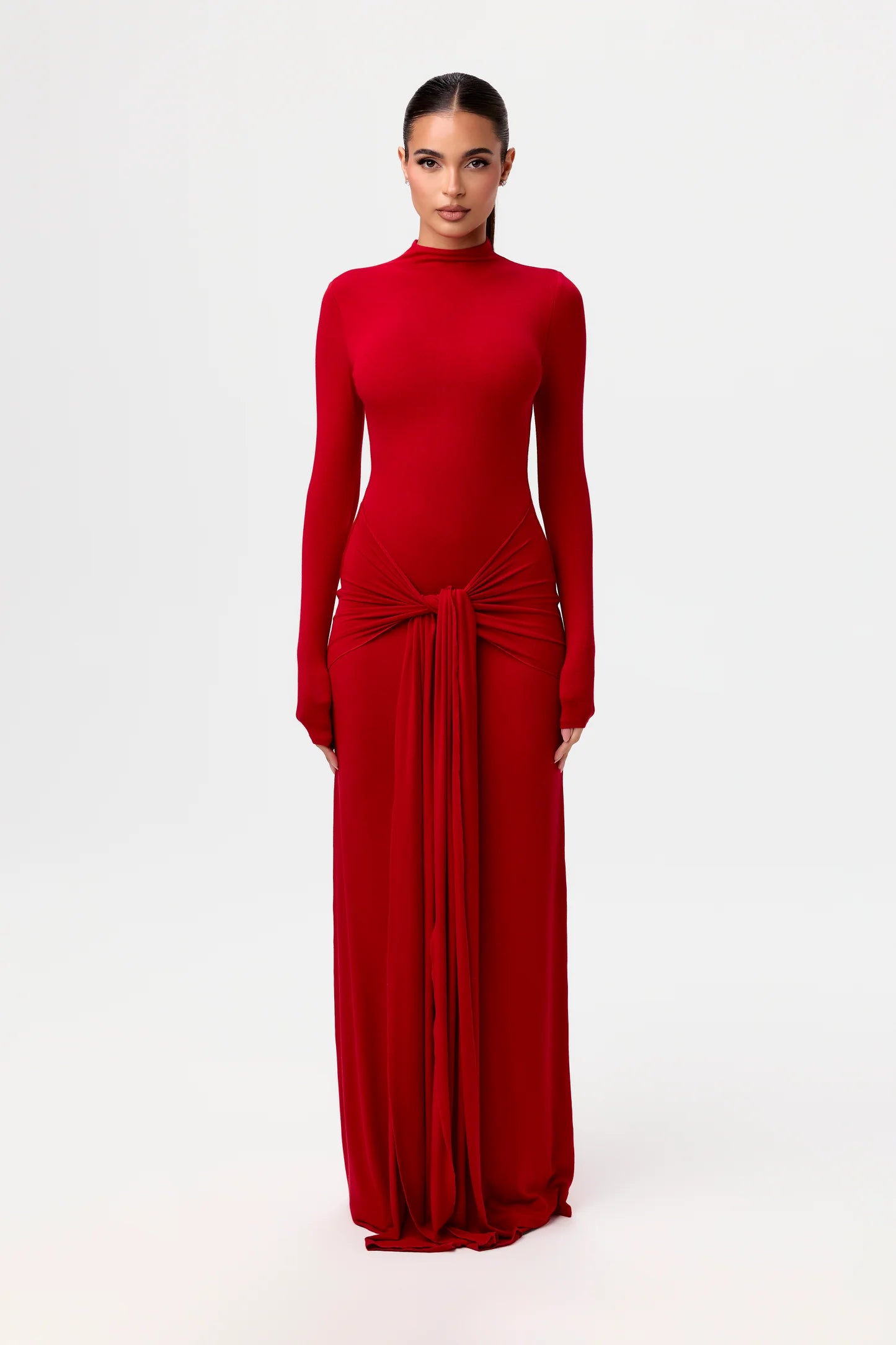 Naked Wardrobe - Turtleneck Draped Tie Dress .